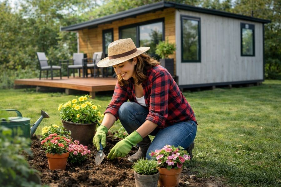 Bahçede yapılan küçük düzenlemeler bile konteyner ev yaşamını daha keyifli hâle getirir. Saksı bitkileri yenilenebilir, deck temizlenebilir, aydınlatmalar kontrol edilebilir ve dış alan oturma düzeni revize edilebilir.