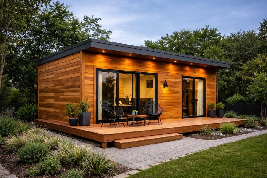 Ahşap cephe kaplamaları konteyner evlerin modern çizgisini yumuşatarak doğal bir atmosfer yaratır. 2026’da ahşap kaplamalar daha dayanıklı yüzey işlemleri, daha geniş renk alternatifleri ve sürdürülebilir orman kaynaklarıyla öne çıkıyor.