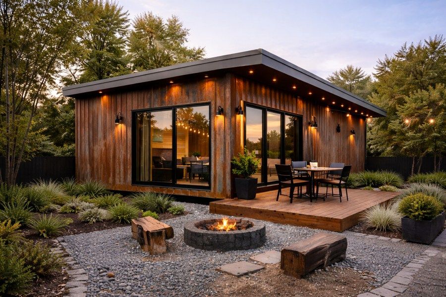 Ahşap görünümlü kompozit kaplamalar, metal yüzeyli konteynerlerle mükemmel bir denge oluşturuyor. Bu trend 2026’da daha doğal çizgilere evriliyor; daha yumuşak tonlar, geniş yüzeyli panel uygulamaları ve mat dokular öne çıkıyor.