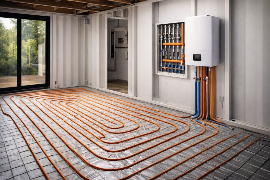 Zemin ısıtma sistemleri, konteyner evlerde giderek daha popüler hâle gelmektedir. Bunun nedeni, klasik ısıtma sistemlerinin aksine tüm mekâna eşit şekilde yayılan, homojen ve doğal bir ısı sağlayabilmesidir. Ayak seviyesinden yukarı doğru yükselen bu ısı akışı hem çok daha konforlu bir his sunar hem de enerji kullanımını minimuma indirir.
