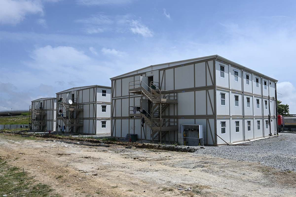 Karmod olarak geliştirdiğimiz yeni nesil teknoloji ile üretilen konteyner şantiye yapıları çalışanlara evlerindeki konforu yaşatıyor. Her biri aynı konforla üretilip kurulum yapılan 3 blok aynı planlarda projelendirildi. Her blok yatakhane odaları ile WC Duş donatılarının yer aldığı üç kat üzerine yükseliyor.